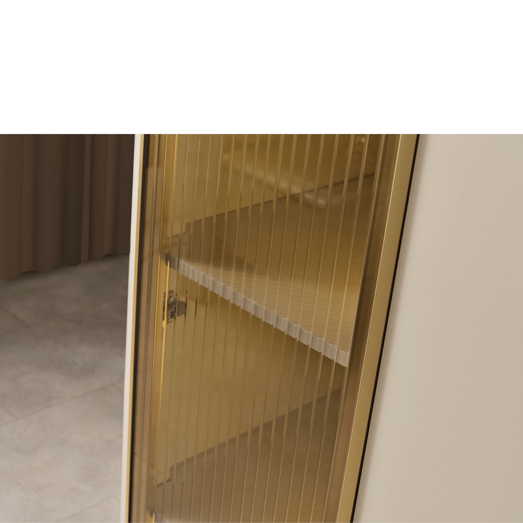 Hochglanz-Fronten in Creme mit goldfarbenen Akzenten