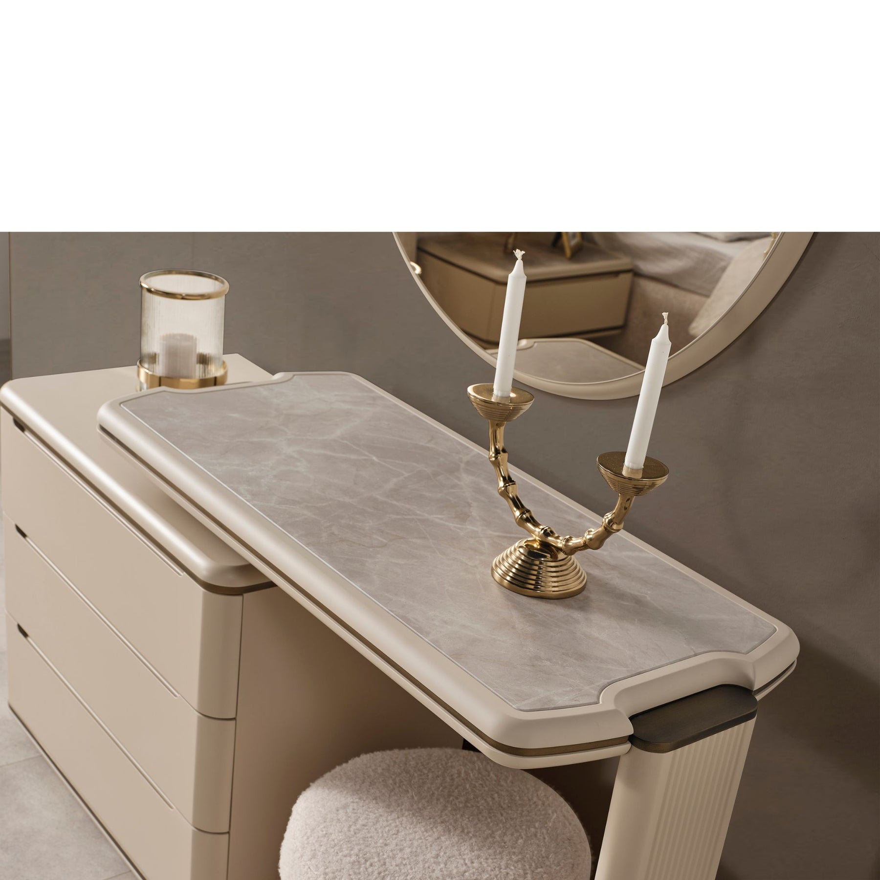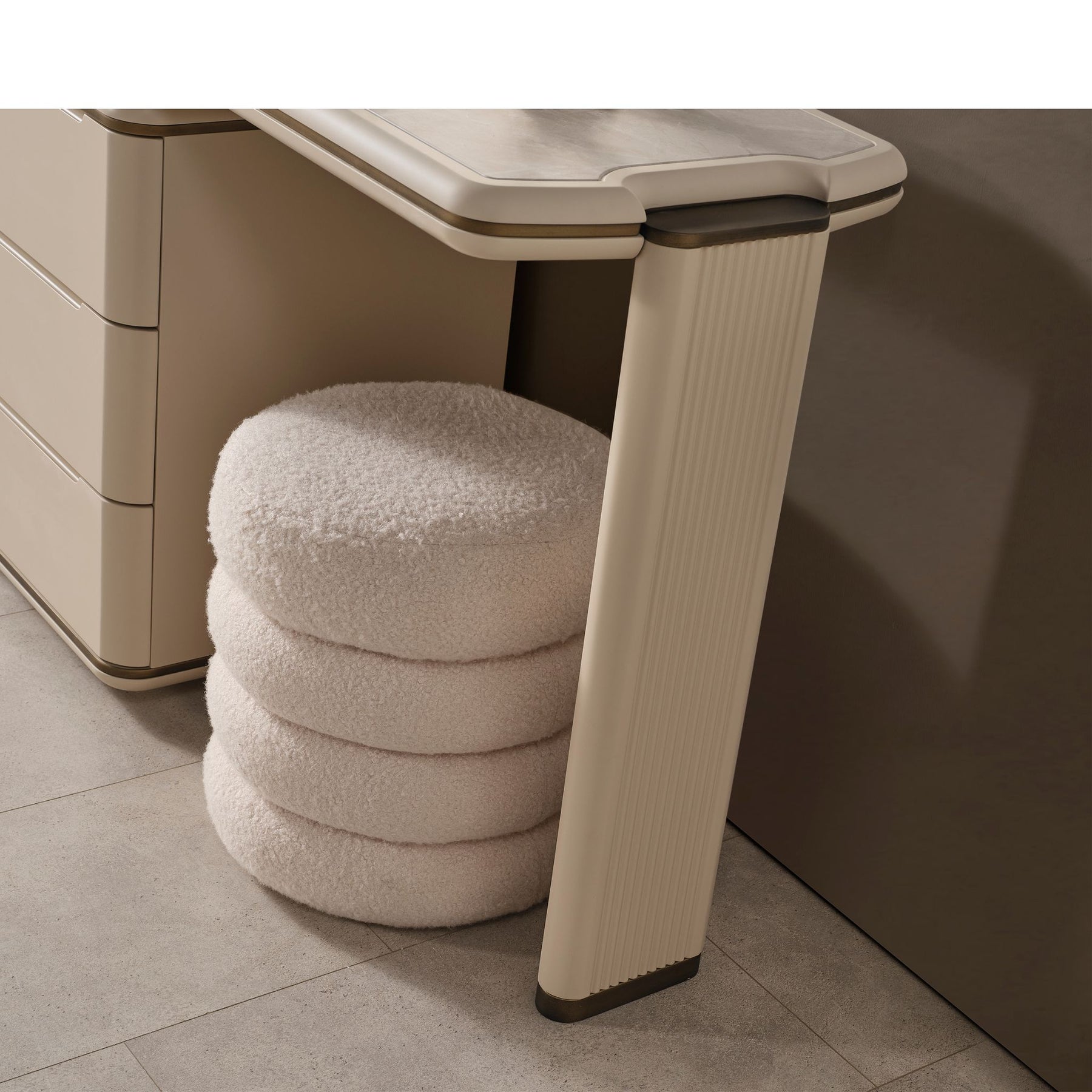 Gegen Aufpreis: Schminktisch mit Spiegel und Hocker erhältlich.