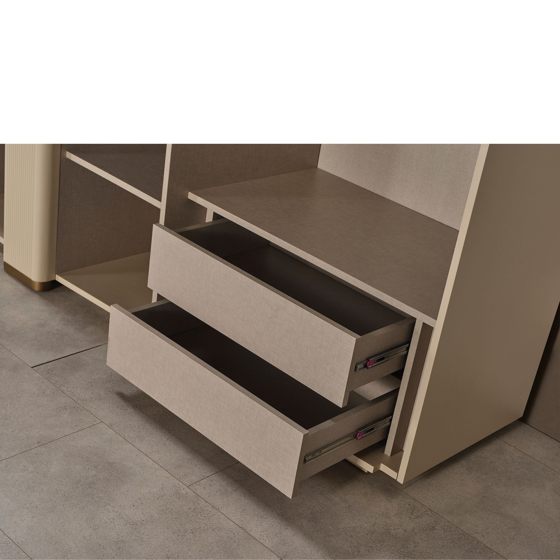 • 2 Nachtkonsolen: Mit Soft-Close-Schubladen und harmonisch abgerundetem Design passend zum Bett.
