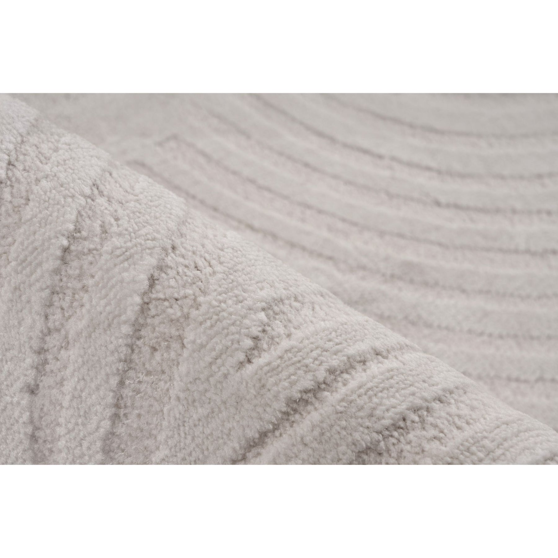 Der Teppich Gala 300 Silver verbindet eine angenehm weiche Oberfläche mit einer dezenten 3D-Hoch-Tief-Struktur. Die sanften Rundlinien schaffen eine ruhige, elegante Optik und eignen sich ideal für Wohn-, Schlaf- und Essbereiche.