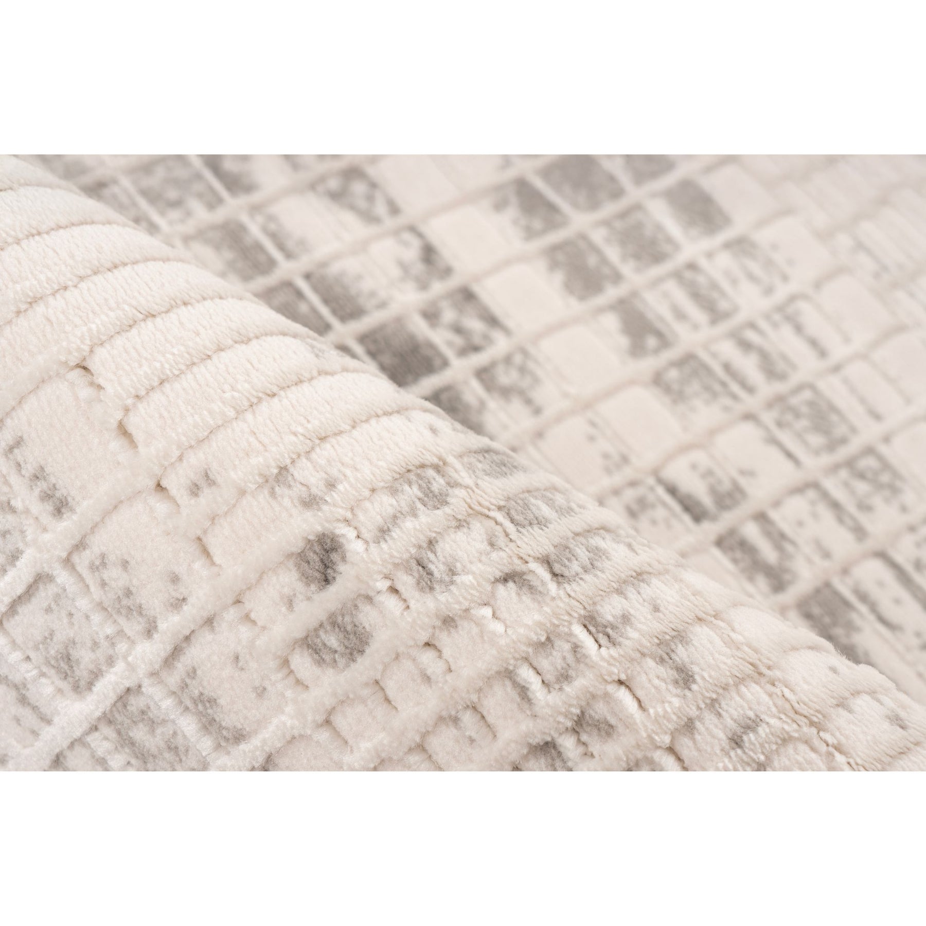 Der Napoli 503 Silver kombiniert ein feines, leicht abstraktes Kachelmuster mit sanften Silber- und Grauschattierungen, die dem Teppich eine moderne und gleichzeitig ruhige Ausstrahlung verleihen. Die helle, strukturierte Optik fügt sich harmonisch in vielfältige Einrichtungsstile ein – von minimalistisch bis elegant. Die angenehm weiche Oberfläche sorgt für ein komfortables Laufgefühl und macht den Teppich ideal für Wohn-, Schlaf- und Ankleidezimmer. Durch die Shrink-Garn-Technik entsteht ein subtiler 3D-Effekt, der die Quadrate und Linien dezent hervorhebt und Tiefe verleiht. Die hochwertige Materialmischung bietet Langlebigkeit, Formstabilität und Pflegeleichtigkeit. Dank hoher Dichte wirkt das Muster klar, fein und hochwertig.
