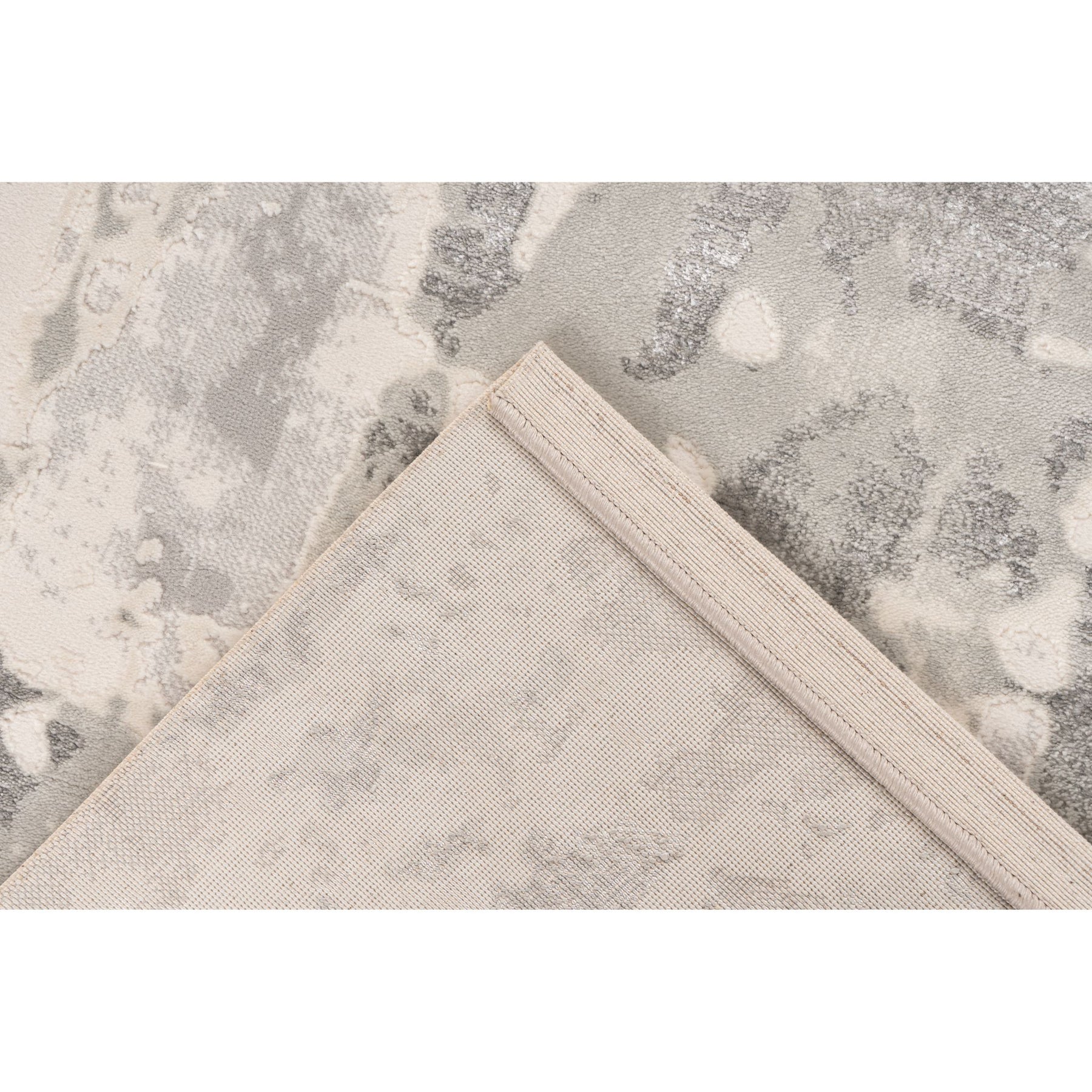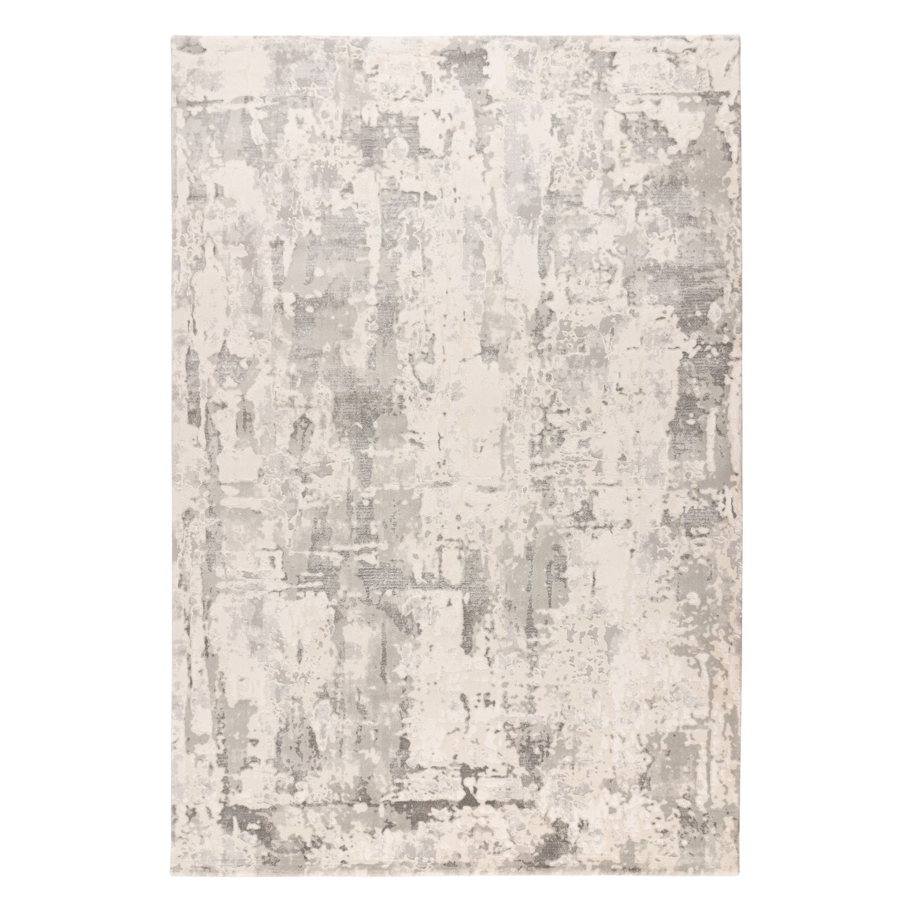 Der Teppich Tropez 503 Silver von Pierre Cardin zeigt ein auffälliges, modern-abstraktes Strukturmuster in hellen Grau- und Silbertönen. Das Design erinnert an eine leicht verwitterte, kunstvolle Oberfläche, wie auf dem Bild klar erkennbar. Durch die Shrink-Polyester-Technik entsteht ein subtiler 3D-Effekt, der einzelne Strukturen optisch hervorhebt und dem Teppich zusätzliche Tiefe verleiht. Die weiche Haptik sorgt für ein angenehmes Laufgefühl, während die hohe Materialdichte und die robuste Mischung aus Polyester und Polypropylen Langlebigkeit und Formstabilität gewährleisten. Ein markantes Premium-Modell, das besonders in modernen Wohn- und Schlafbereichen stilvolle Akzente setzt.
