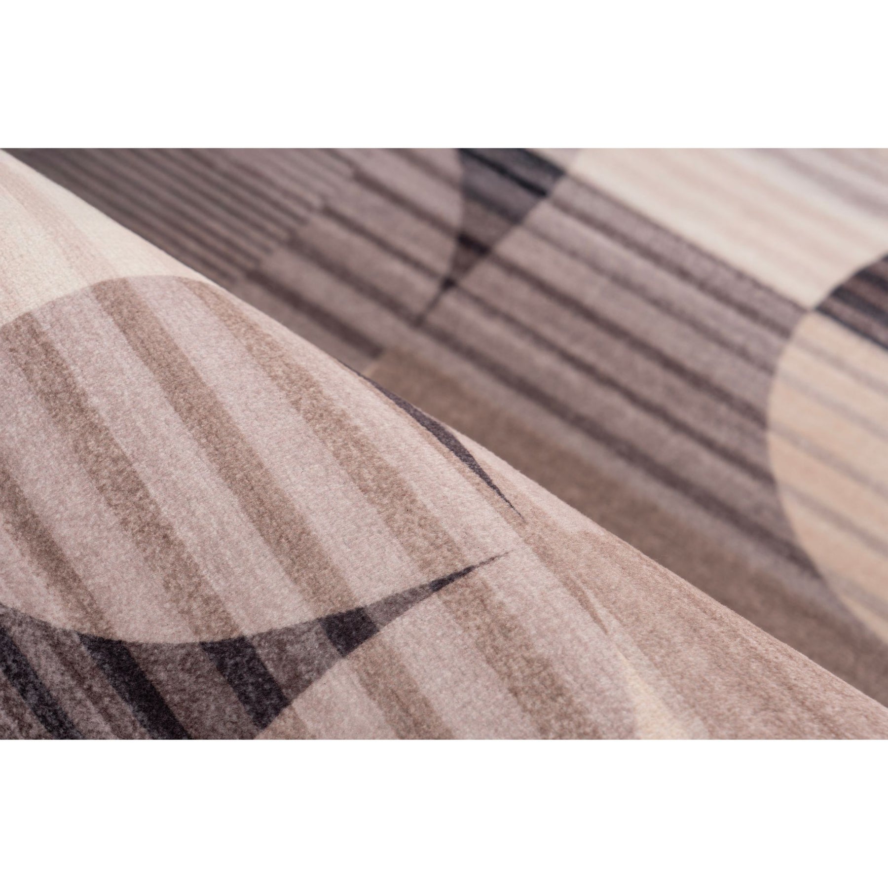 Der Vegas 204 Taupe zeigt ein geometrisches, klar strukturiertes Design, das aus Linien, Rundungen und harmonisch abgestuften Taupe-, Beige- und Brauntönen besteht. Die moderne Musterung wirkt ruhig und zugleich dynamisch und fügt sich perfekt in zeitgemäße Wohnräume ein. Durch den hochwertigen Digitaldruck erscheinen die Formen und Farbverläufe besonders präzise. Der Polyesterflor fühlt sich angenehm weich an, während die flache Gesamthöhe eine leichte Pflege ermöglicht. Dank Anti-Slip-Rückseite liegt der Teppich stabil auf glatten Böden und eignet sich ideal für Wohn- und Schlafzimmer, Essbereiche oder Homeoffice. Die hohe Dichte und Maschinenwaschbarkeit machen das Modell zusätzlich besonders alltagstauglich.