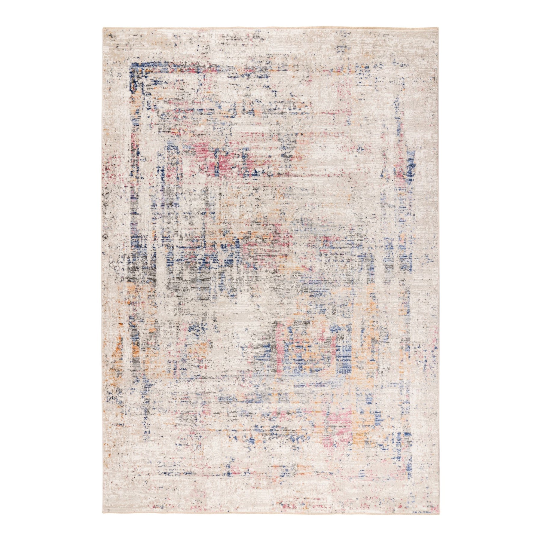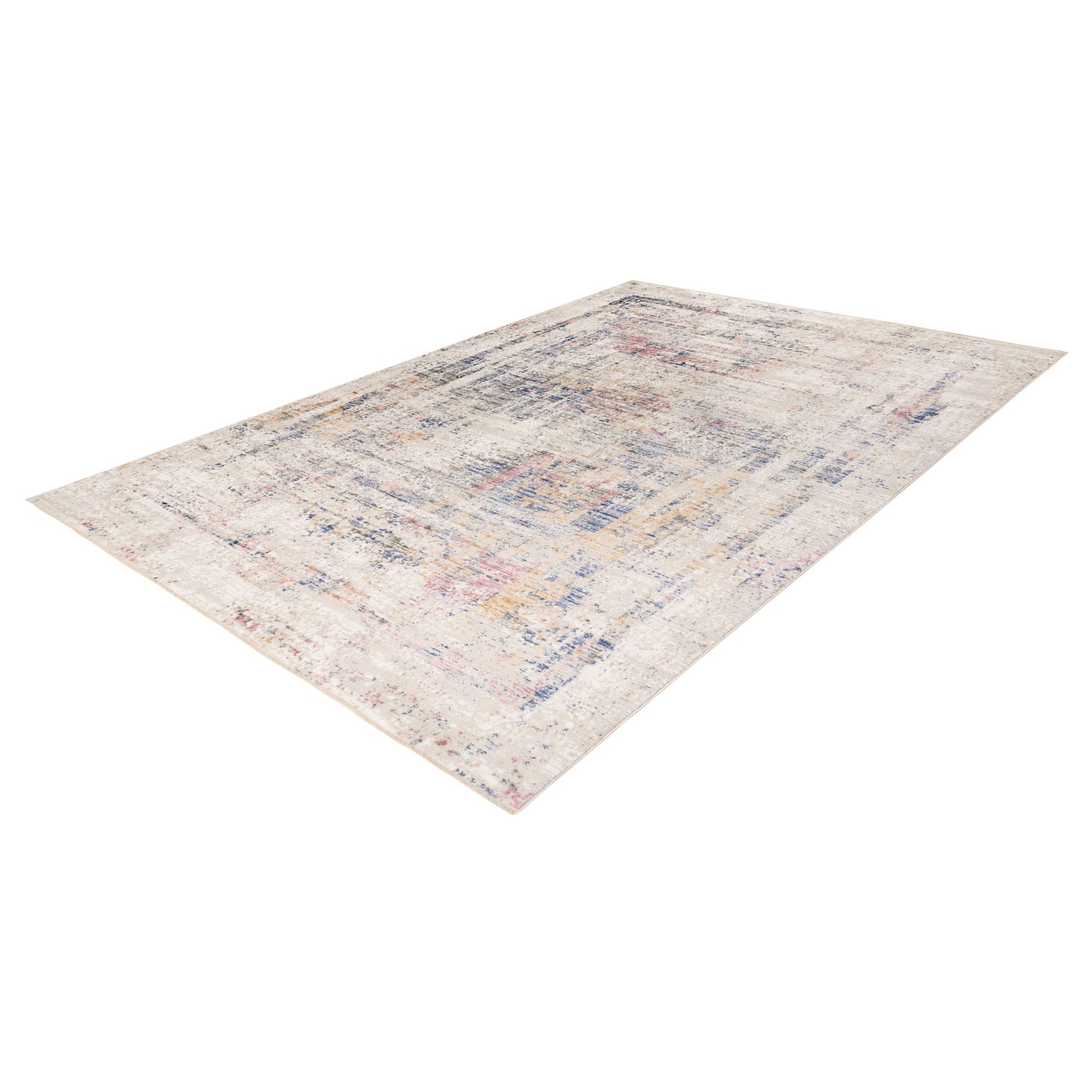 Der Vista 702 Multicolor verbindet eine dezente Grundstruktur in Natur- und Beigetönen mit sanft eingearbeiteten Farbakzenten in Blau, Rosa, Gelb und Grau. Das Ergebnis ist ein moderner, lebendiger Teppich, der Räume optisch aufhellt und gleichzeitig warme, stilvolle Akzente setzt. Die feine, abstrakte Musterung wirkt im Raum besonders harmonisch – ideal für Wohn-, Ess- oder Loungebereiche, wie das Ambiente im Bild zeigt. Die Cross-Woven-Technik sorgt für präzise Details, während das Shrink-Polyester einen sanften 3D-Effekt erzeugt. Die Mischung aus Polypropylen und Polyester verleiht dem Teppich eine weiche Haptik, hohe Strapazierfähigkeit und pflegeleichte Eigenschaften. Natürliche Fransen runden das hochwertige Gesamtbild ab.