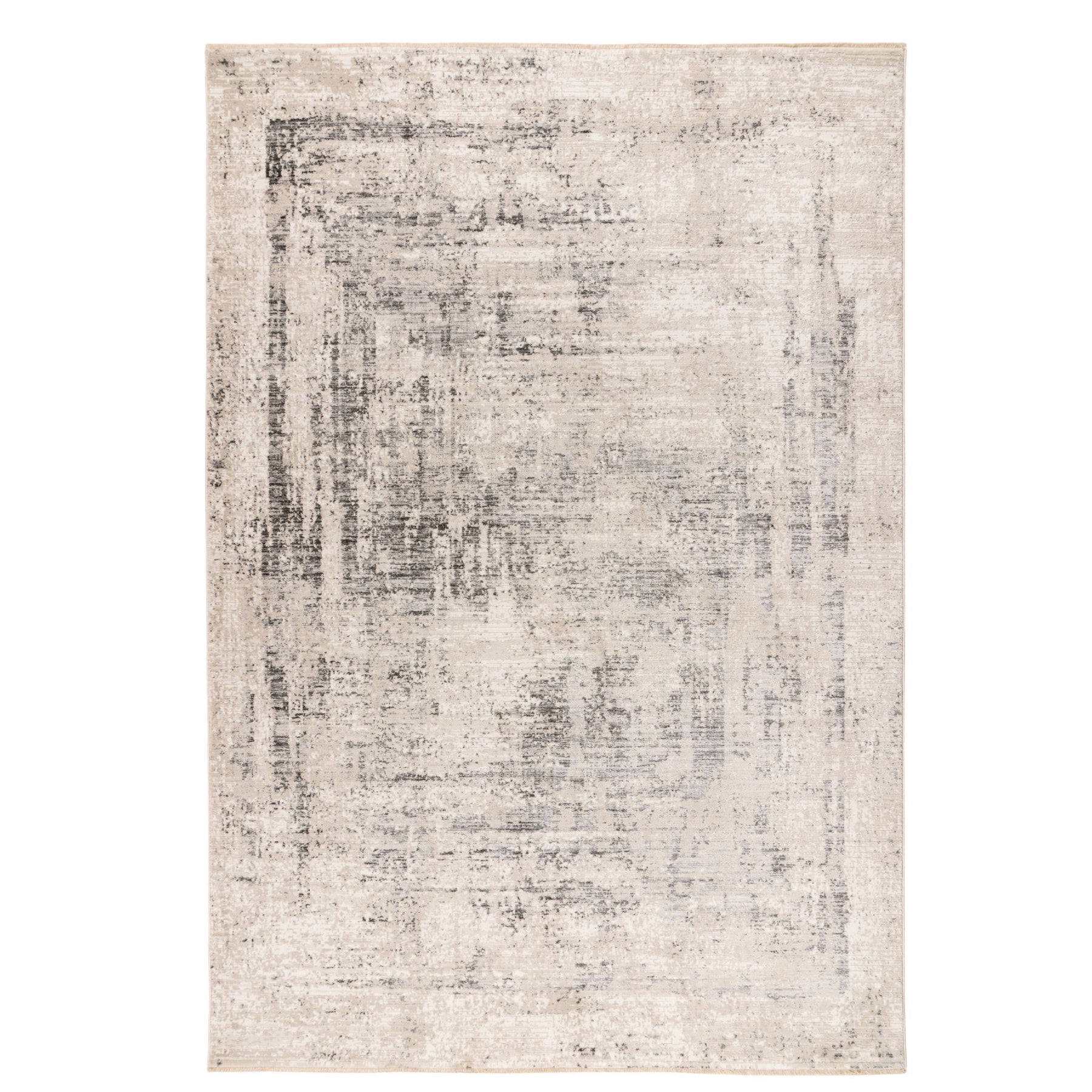 Der Vista 702 Silver präsentiert eine ruhige, abstrakte Musterung in weichen Grau- und Naturnuancen, die dem Raum eine elegante und ausgeglichene Atmosphäre verleiht. Die feinen, verwischten Strukturen wirken im Interieur besonders harmonisch – ideal für moderne Wohnzimmer, Schlafzimmer oder stilvolle Loungebereiche, wie das Raumbeispiel zeigt. Dank der Cross-Woven-Webtechnik entsteht eine detailreiche Oberfläche, während das Shrink-Polyester einen subtilen 3D-Effekt erzeugt. Die Materialmischung aus Polypropylen und Polyester sorgt für eine angenehm weiche Haptik, hohe Strapazierfähigkeit und formstabile Qualität. Natürliche Fransen runden das hochwertige Gesamtbild der Vista-Kollektion ab.