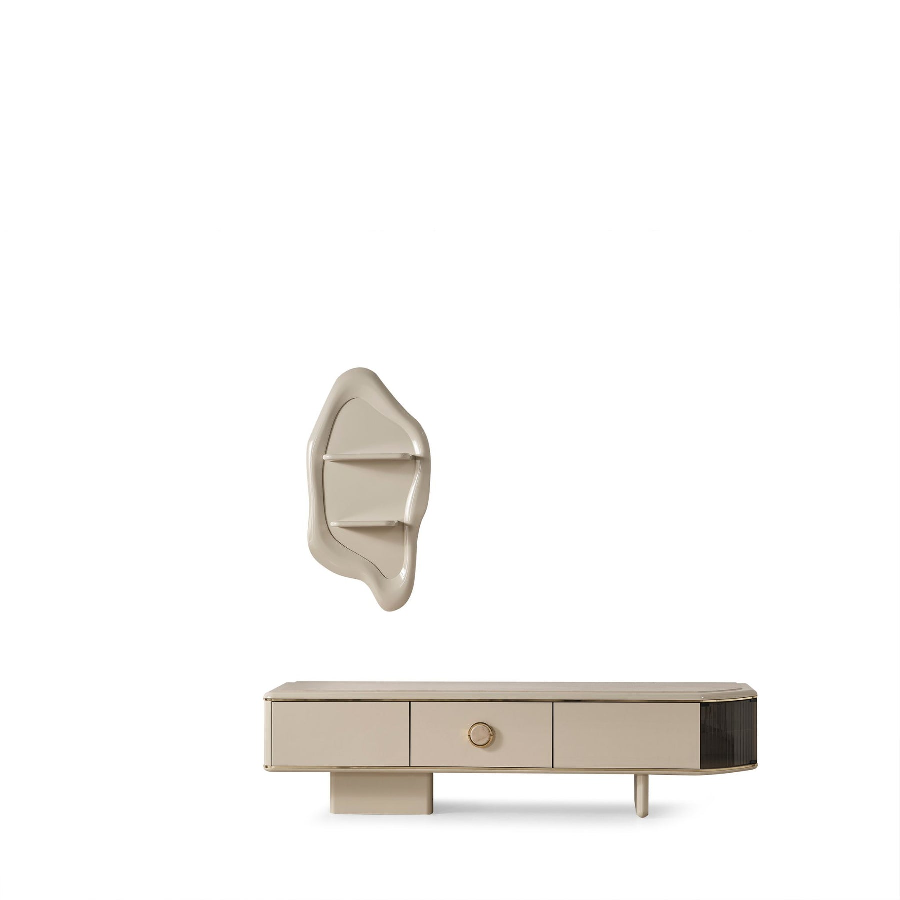 Hängeregal: Organisch geformt mit LED-Beleuchtung, perfekt abgestimmt auf das Lowboard.