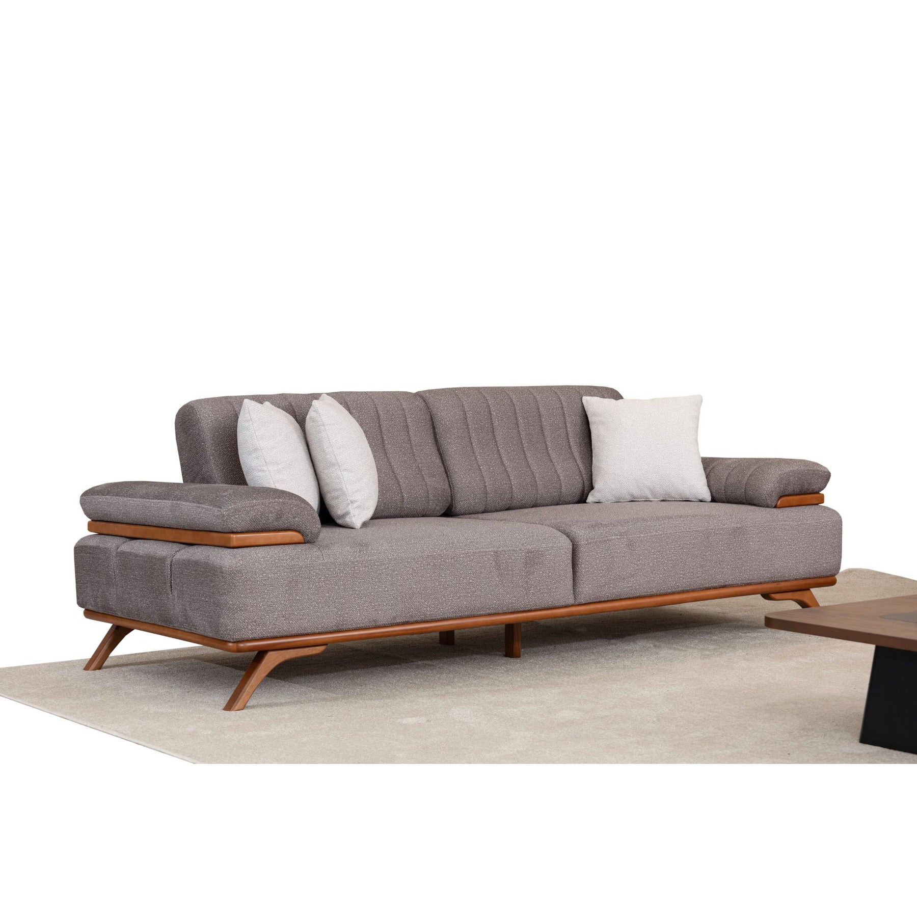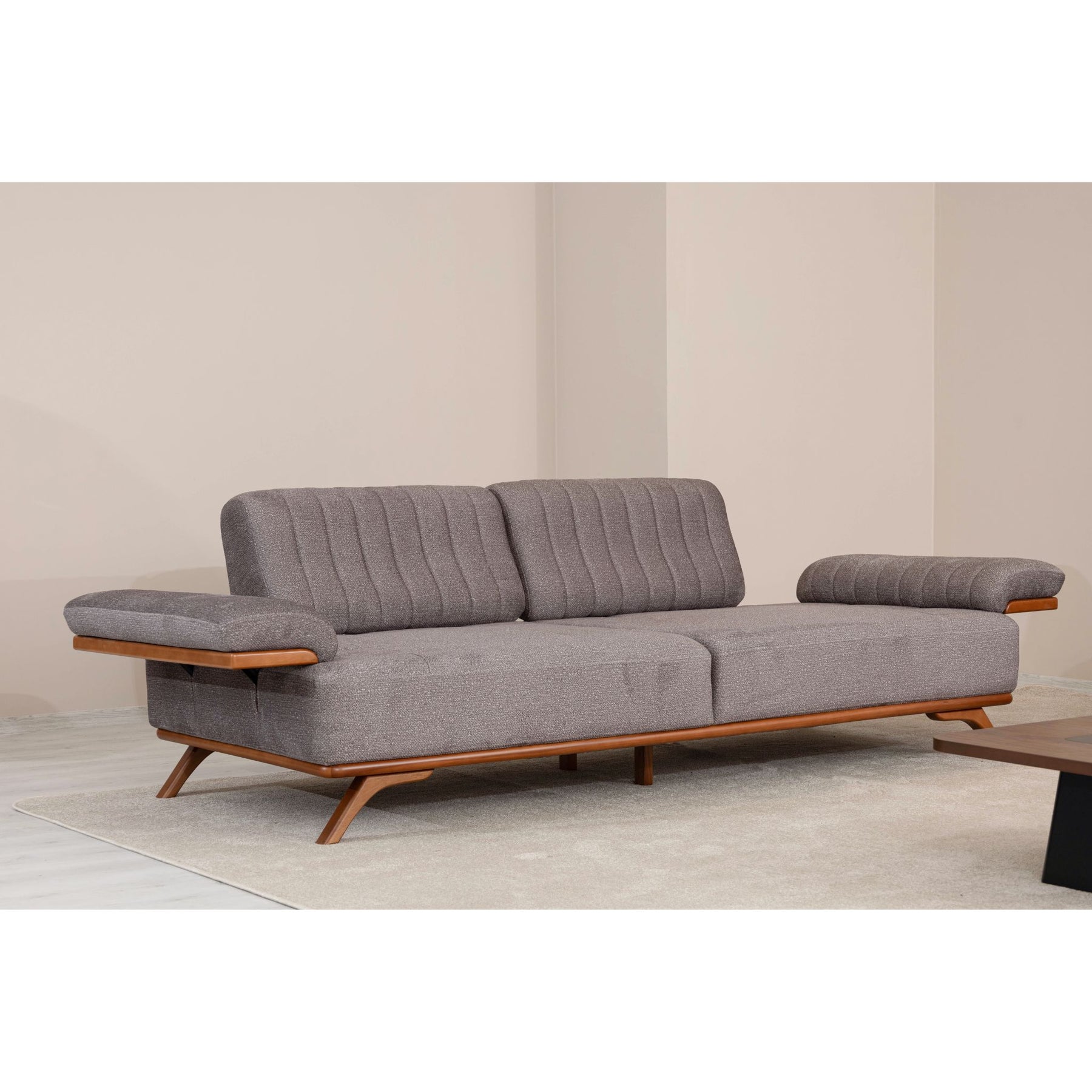 Die elegante Linienführung, kombiniert mit fein abgestimmten Holz-Elementen, verleiht dem Infinity Sofa einen edlen, harmonischen Charakter.