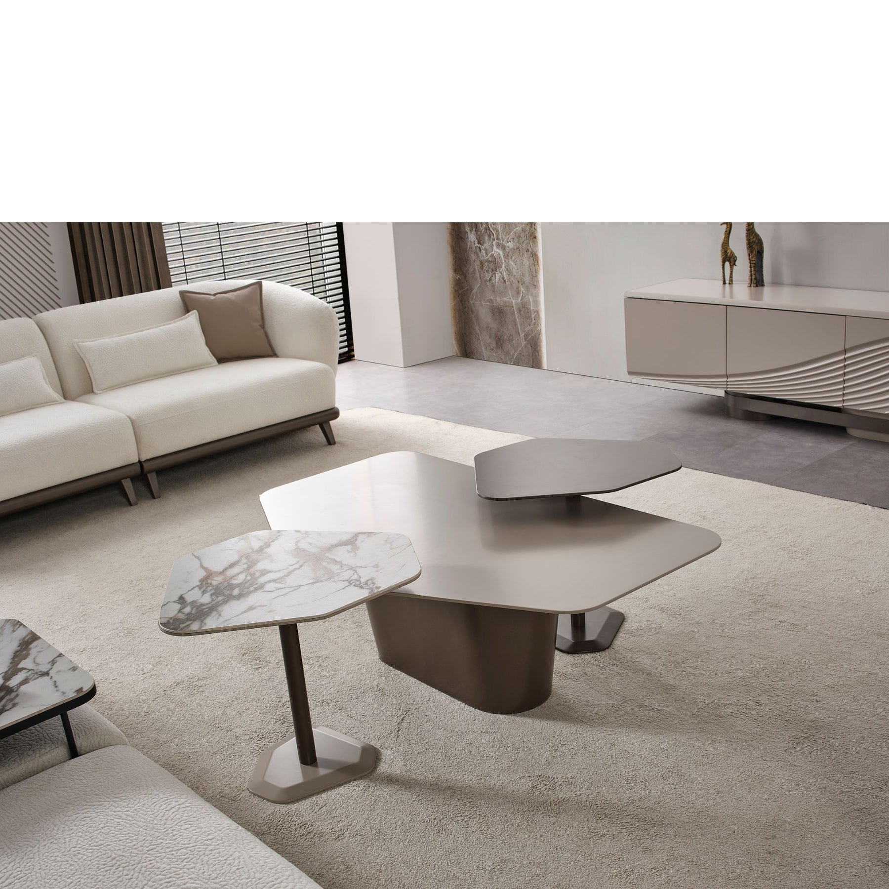 Beistelltische: In zwei Größen erhältlich – wahlweise mit Marmoroptik-Platte, perfekt kombinierbar mit dem Couchtisch.