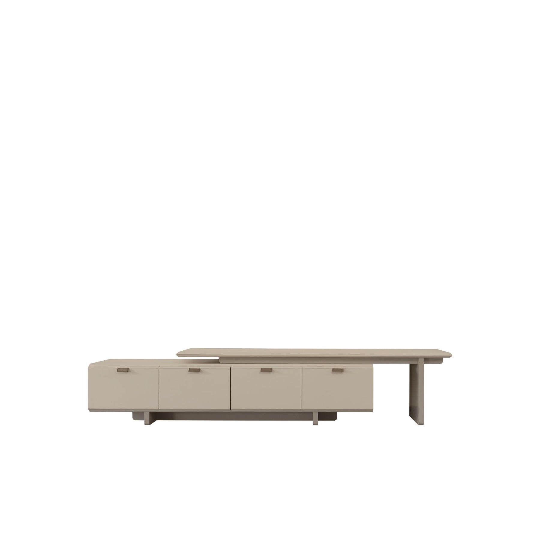Erweiterungselement: Das Lowboard kann seitlich verlängert werden – sichtbar am integrierten Auszugsteil. Dadurch entsteht zusätzliche Abstellfläche und flexible Nutzungsmöglichkeit.