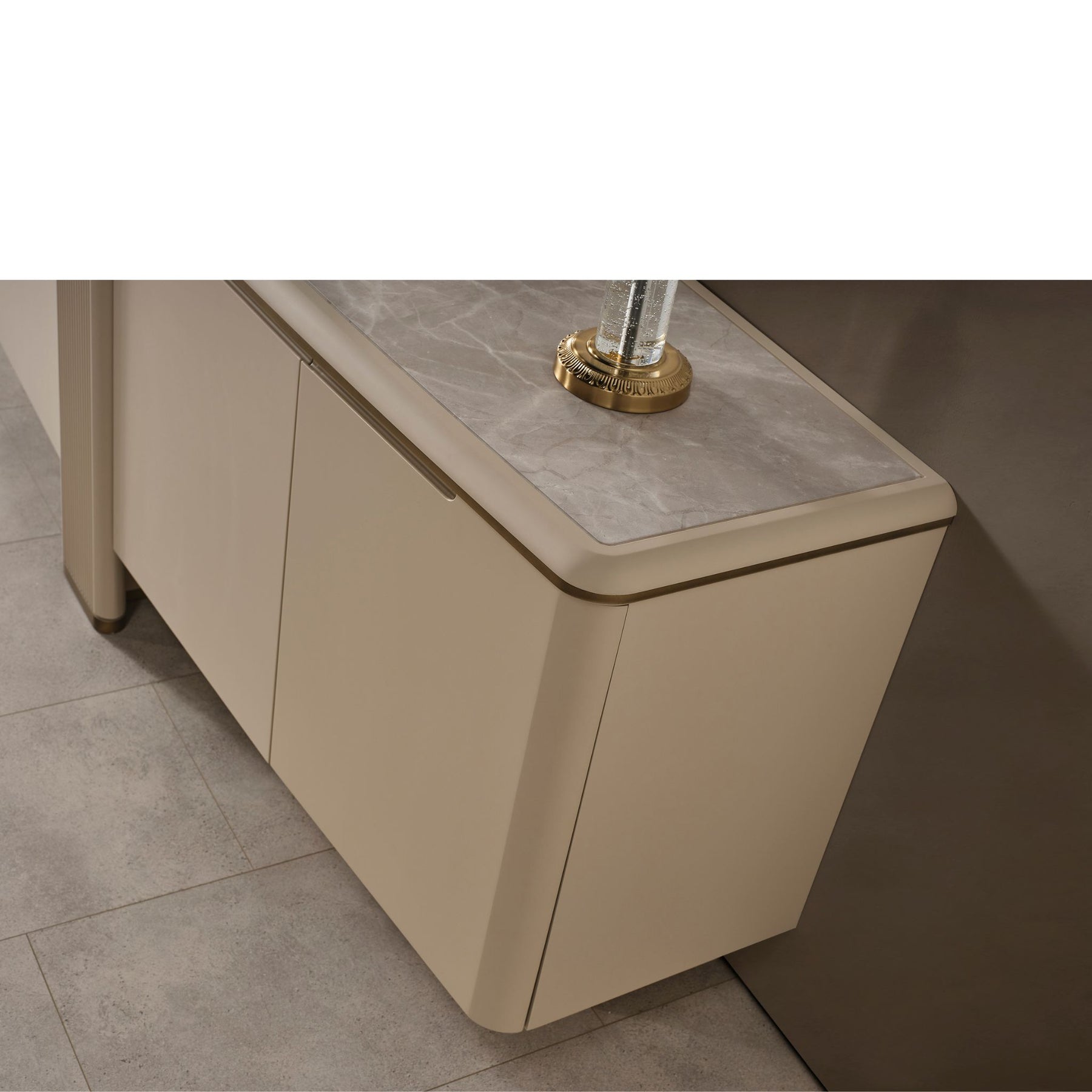 • Cremefarbene, matte Oberfläche mit goldenen Details