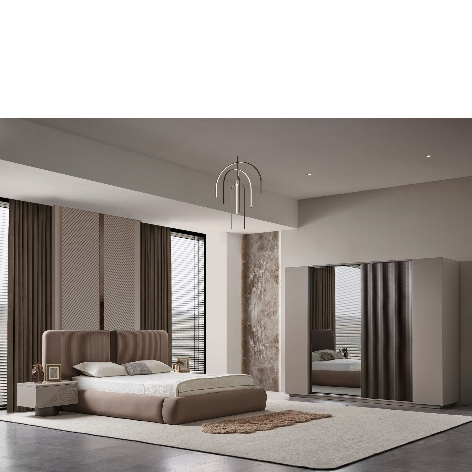 Das Latte Schlafzimmer-Set überzeugt mit einem modernen, harmonischen Design in warmen Braun- und Sandtönen. Edle Materialien, weiche Linien und praktische Funktionen schaffen ein elegantes und zugleich gemütliches Ambiente – ideal für ein stilvolles Schlafzimmer mit Charakter.