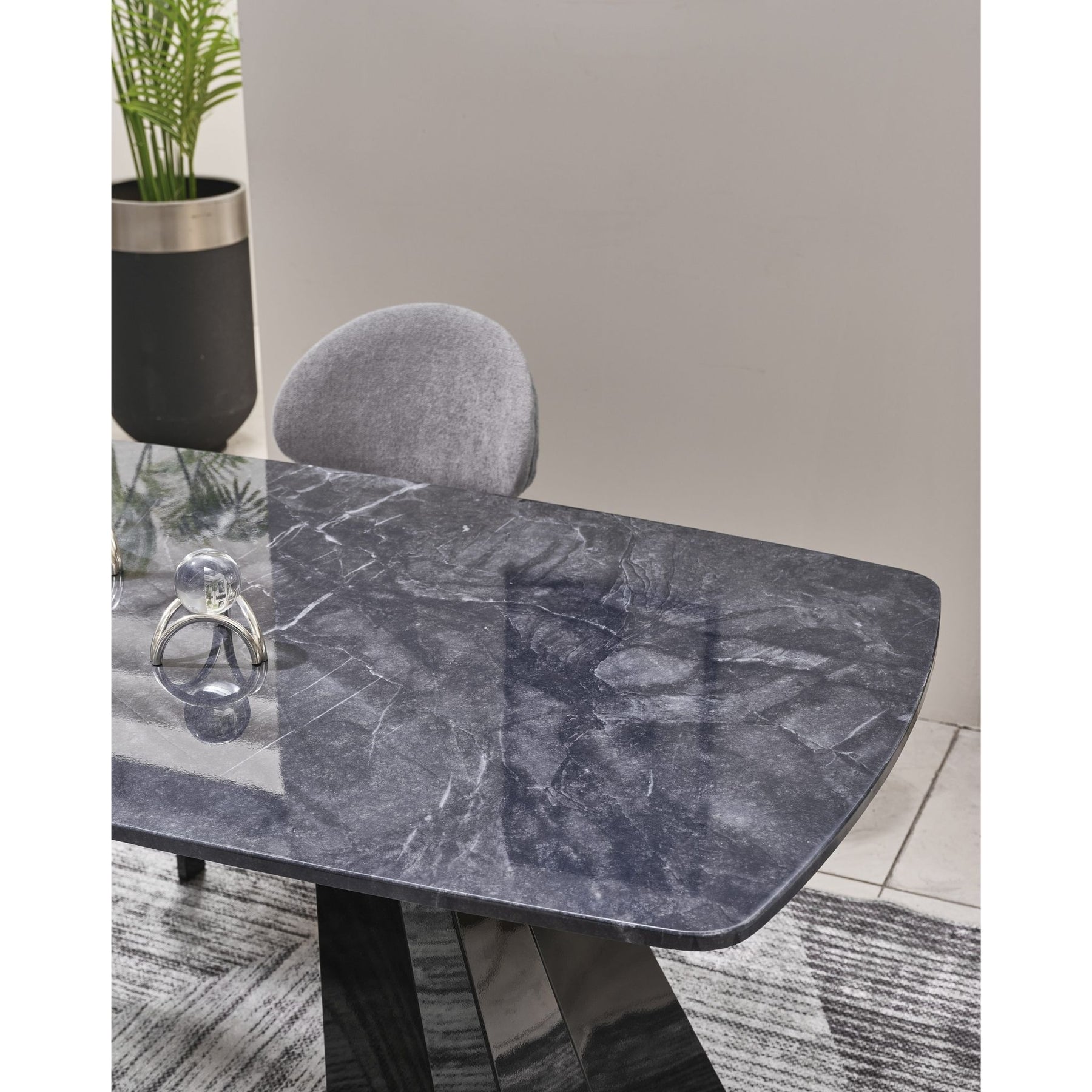 Pramid Mermerit Esstisch-Set mit Viyana Stühlen (180 × 92 cm)