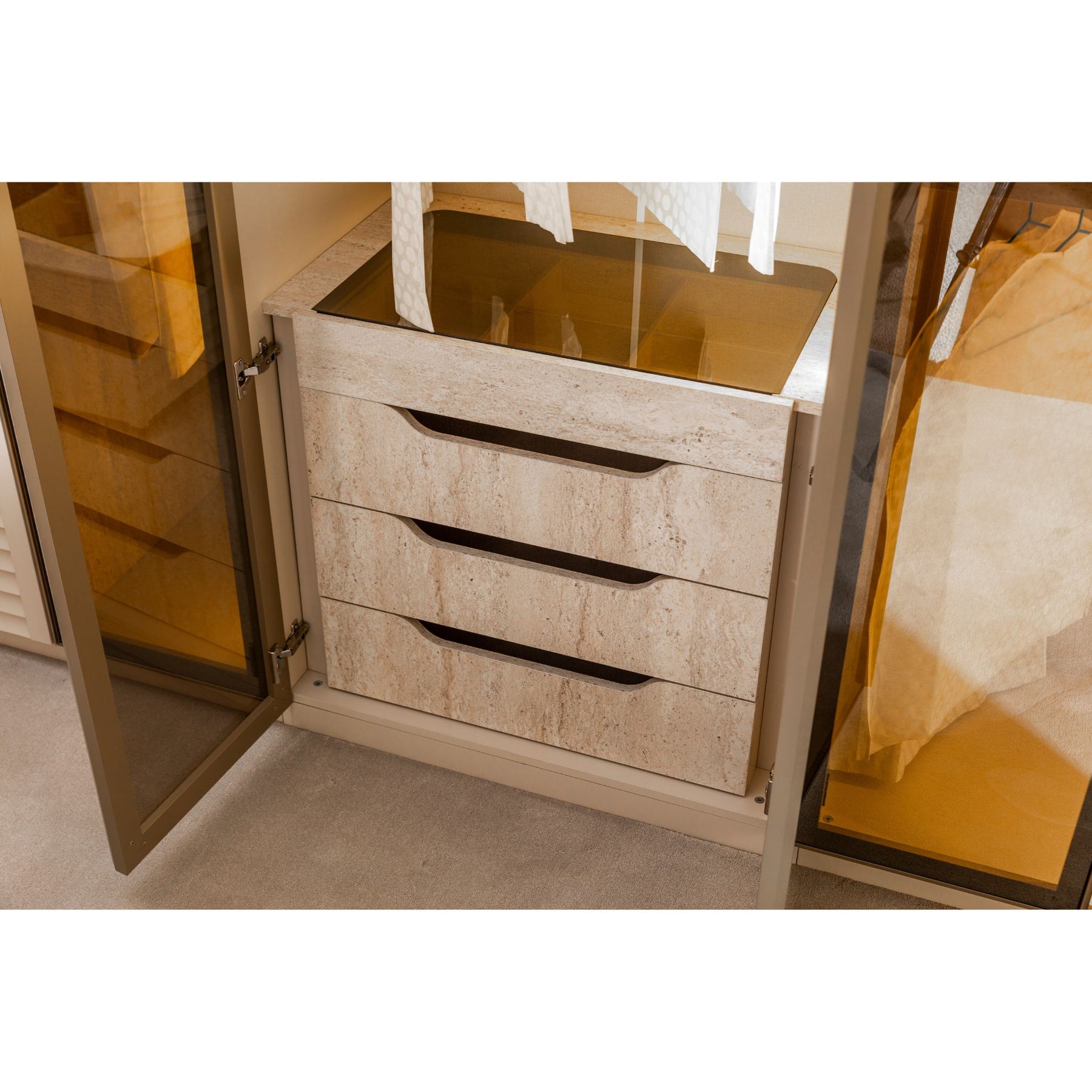 Mehrere Fächer, Ablagen und Schubkästen für optimale Ordnung