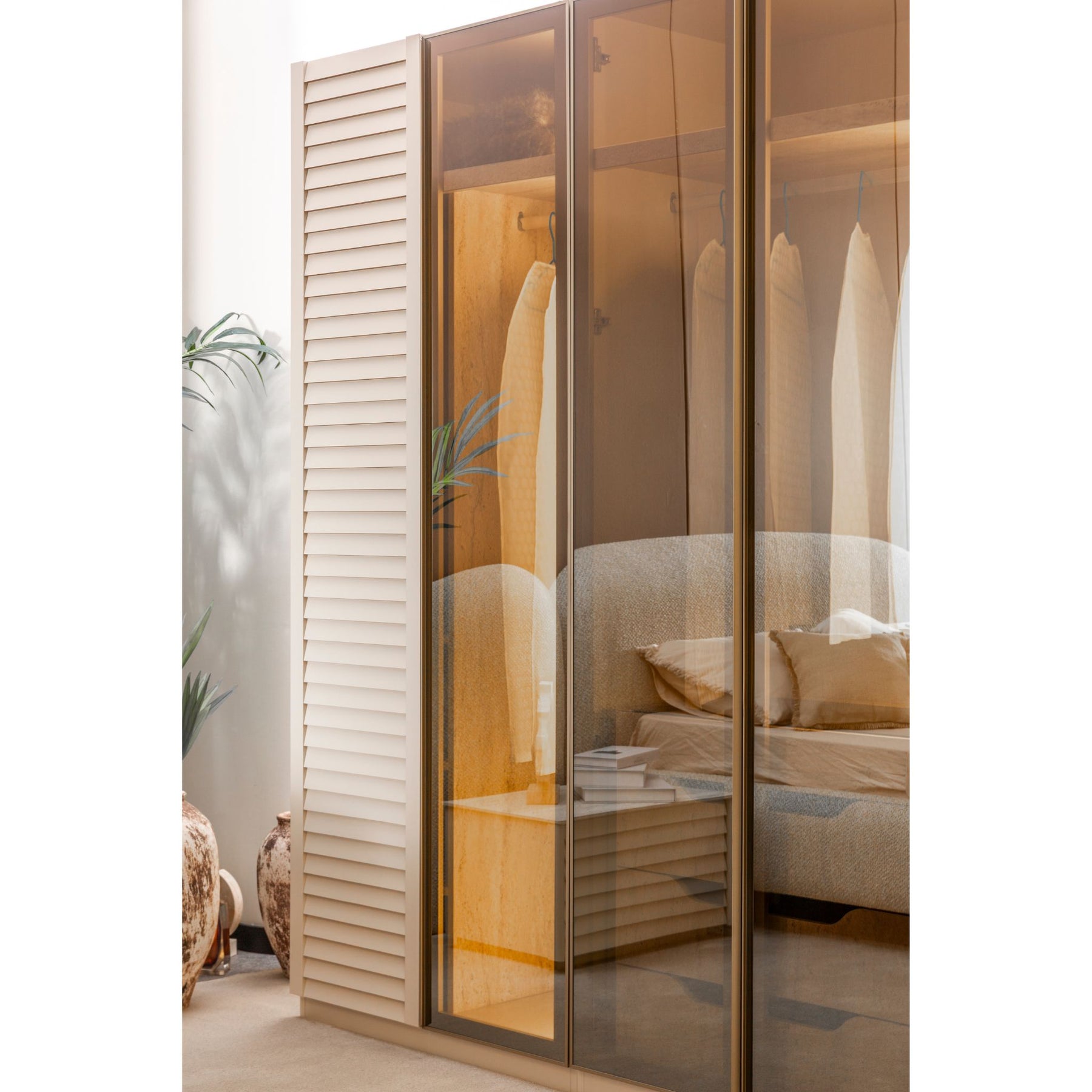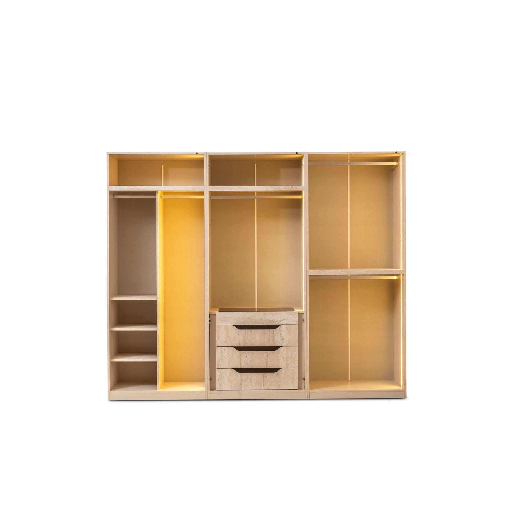 Kleiderschrank 6-türig, mit integrierter Beleuchtung, die sich beim Öffnen automatisch durch einen Sensor aktiviert