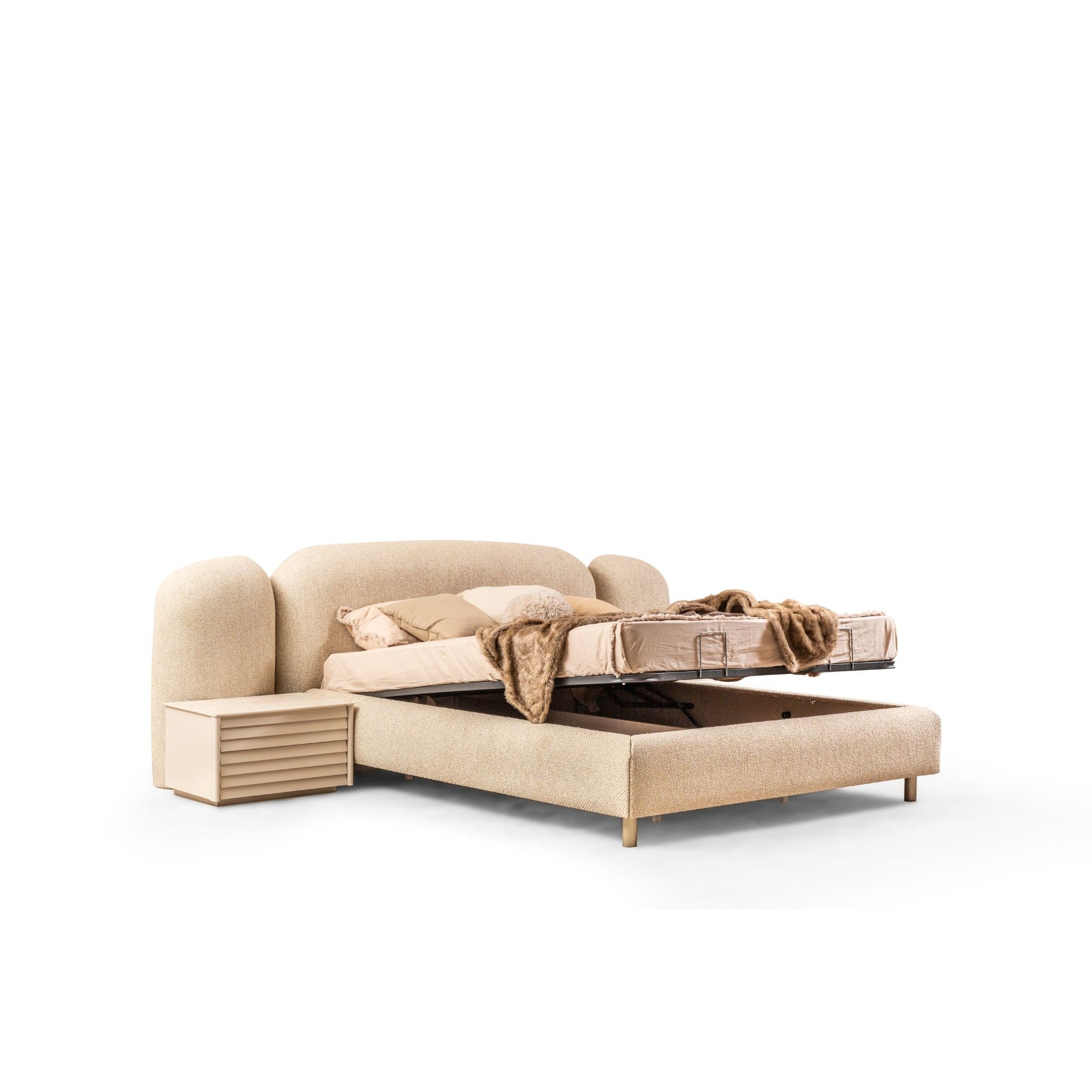 Hochklappbarer Bettkasten für verdeckten Stauraum