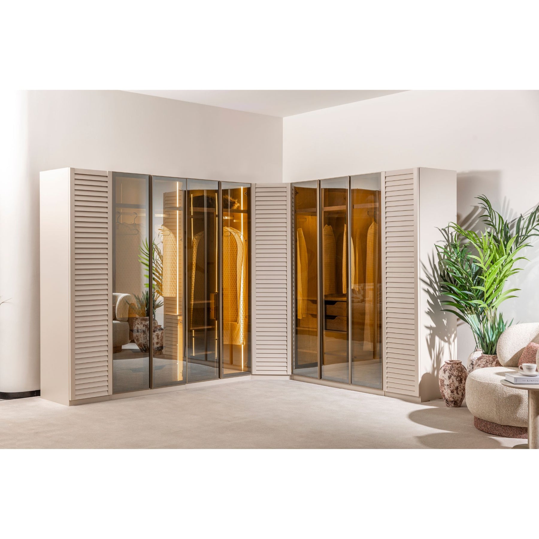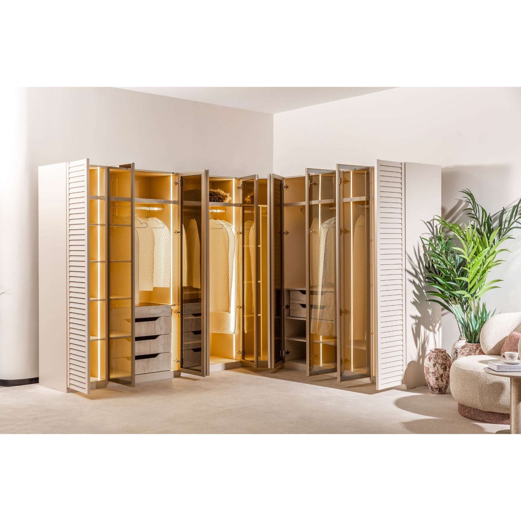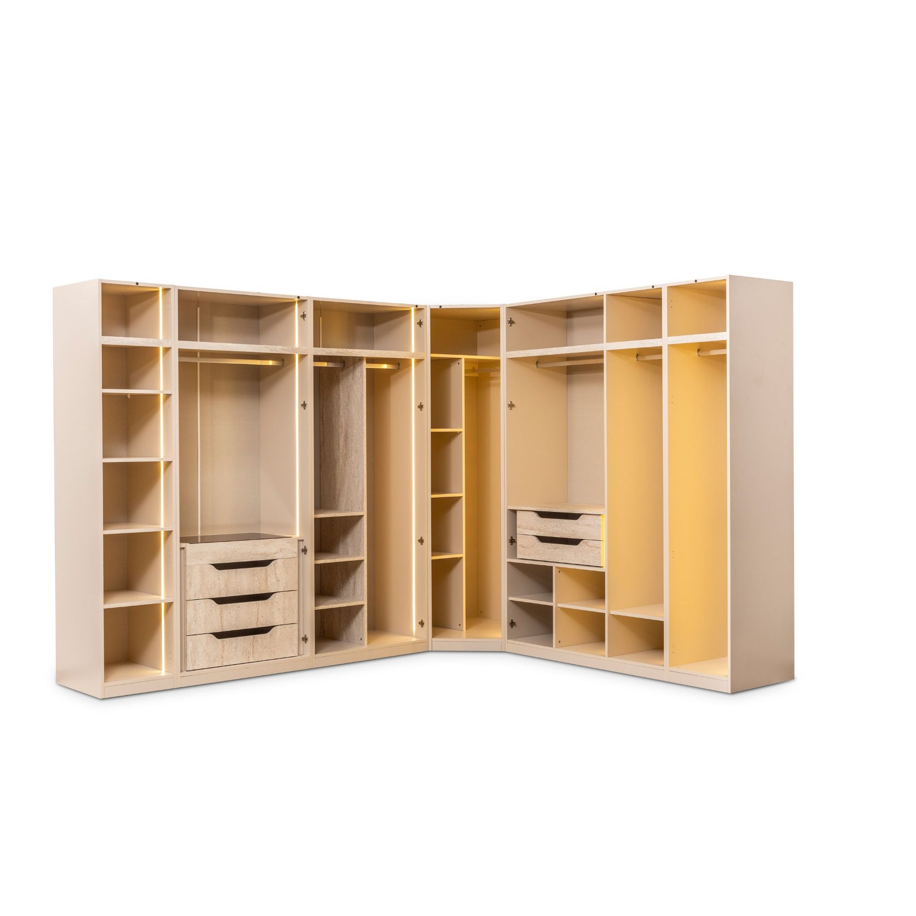 Das System ist auch als Eckschrank planbar.