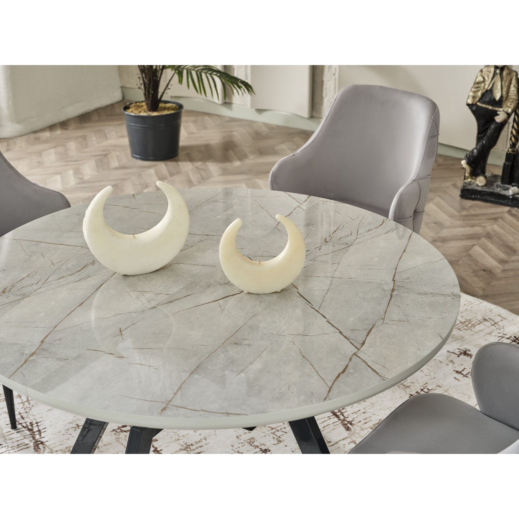 Das Tuna Esstisch-Set überzeugt durch sein elegantes Design, hochwertige Materialien und praktische Funktionalität.